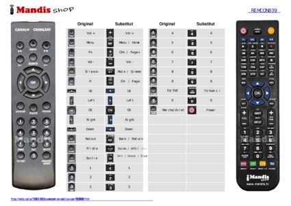A continuació, us mostrarem la correspondència entre cada un dels botons del comandament original i el botó que realitza la mateixa funció en el comandament de substitució. En alguns casos, és possible que necessiti prémer la tecla SHIFT abans de prémer un altre botó per realitzar certes accions. Aquestes funcions addicionals sovint no s'utilitzen gaire i s'inclouen per facilitar la comprensió del comandament de substitució, o perquè el comandament original té més botons que el seu equivalent.