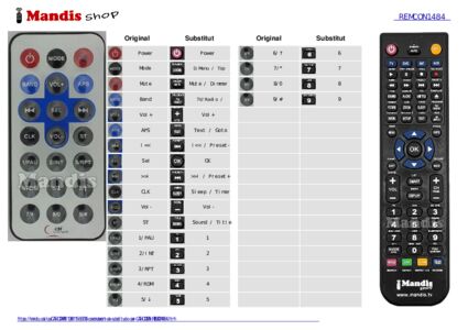 Aquest comandament a distància substitueix completament el teu REMCON1484 en totes les seves funcions. No és un comandament universal, sinó una còpia exacta del teu original.