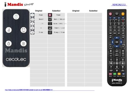 Aquest comandament a distància substitueix completament el teu REMCON2132 en totes les seves funcions. No és un comandament universal, sinó una còpia exacta del teu original.