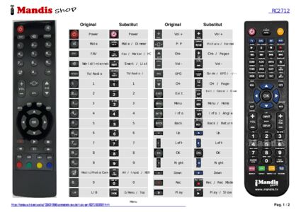 Aquest comandament a distància substitueix completament el teu RC2712 (30073061) en totes les seves funcions. No és un comandament universal, sinó una còpia exacta del teu original.