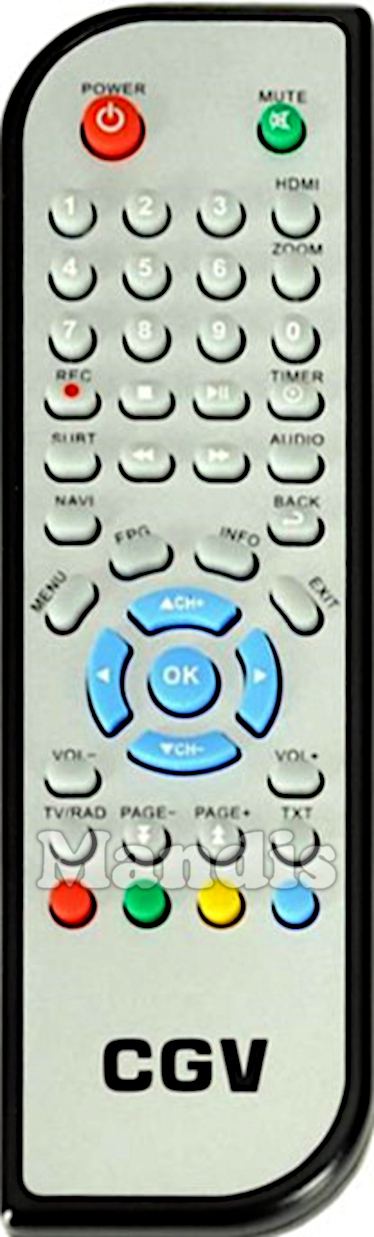Comandament a distància original Etimo-IPI de la marca CGV. Es tracta d'un model original de comandament a distància.