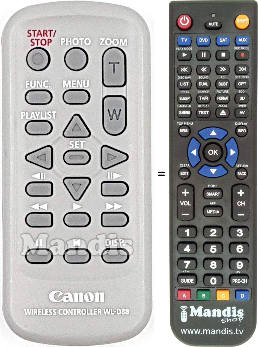 Aquest comandament a distància fa totes les funcions del comandament original: