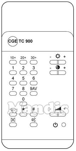 Comandament a distància original TC 900 de la marca Cge. Es tracta d'un model original de comandament a distància.