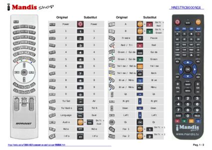 A continuació, us mostrarem la correspondència entre cada un dels botons del comandament original i el botó que realitza la mateixa funció en el comandament de substitució. En alguns casos, és possible que necessiti prémer la tecla SHIFT abans de prémer un altre botó per realitzar certes accions. Aquestes funcions addicionals sovint no s'utilitzen gaire i s'inclouen per facilitar la comprensió del comandament de substitució, o perquè el comandament original té més botons que el seu equivalent.
