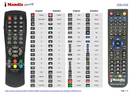 A continuació, us mostrarem la correspondència entre cada un dels botons del comandament original i el botó que realitza la mateixa funció en el comandament de substitució. En alguns casos, és possible que necessiti prémer la tecla SHIFT abans de prémer un altre botó per realitzar certes accions. Aquestes funcions addicionals sovint no s'utilitzen gaire i s'inclouen per facilitar la comprensió del comandament de substitució, o perquè el comandament original té més botons que el seu equivalent.
