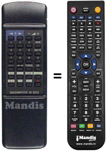 Comandament a distància que substitueix el comandament DIGICOMPUTER28KEYS en totes les seves funcions.