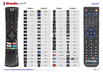 Aquest comandament a distància substitueix completament el teu RC4390P (30101765) en totes les seves funcions. No és un comandament universal, sinó una còpia exacta del teu original.