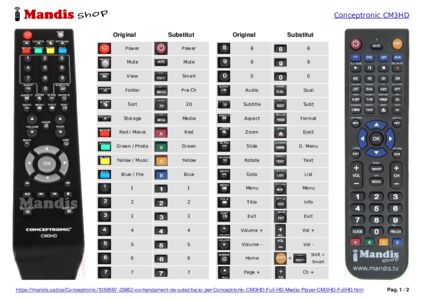 Aquest comandament a distància substitueix completament el teu CM3HD Full HD Media Player (CM3HD-FullHD) en totes les seves funcions. No és un comandament universal, sinó una còpia exacta del teu original.