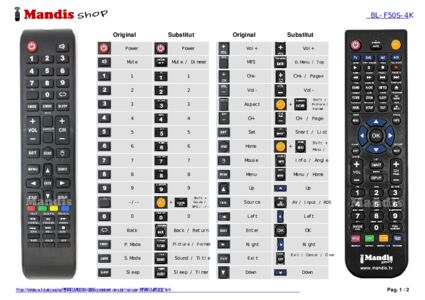 A continuació, us mostrarem la correspondència entre cada un dels botons del comandament original i el botó que realitza la mateixa funció en el comandament de substitució. En alguns casos, és possible que necessiti prémer la tecla SHIFT abans de prémer un altre botó per realitzar certes accions. Aquestes funcions addicionals sovint no s'utilitzen gaire i s'inclouen per facilitar la comprensió del comandament de substitució, o perquè el comandament original té més botons que el seu equivalent.