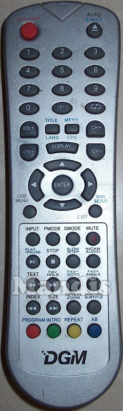 Comandament a distància original DGM001 que serveix per televisors de la marca DGM. Es tracta d'un model original de comandament a distància.