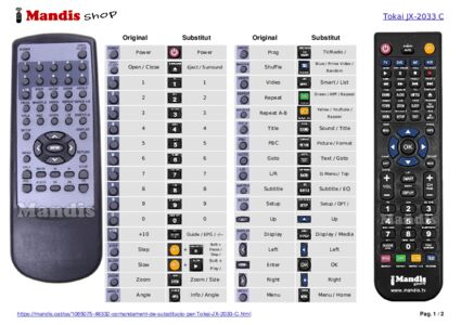 A continuació, us mostrarem la correspondència entre cada un dels botons del comandament original i el botó que realitza la mateixa funció en el comandament de substitució. En alguns casos, és possible que necessiti prémer la tecla SHIFT abans de prémer un altre botó per realitzar certes accions. Aquestes funcions addicionals sovint no s'utilitzen gaire i s'inclouen per facilitar la comprensió del comandament de substitució, o perquè el comandament original té més botons que el seu equivalent.