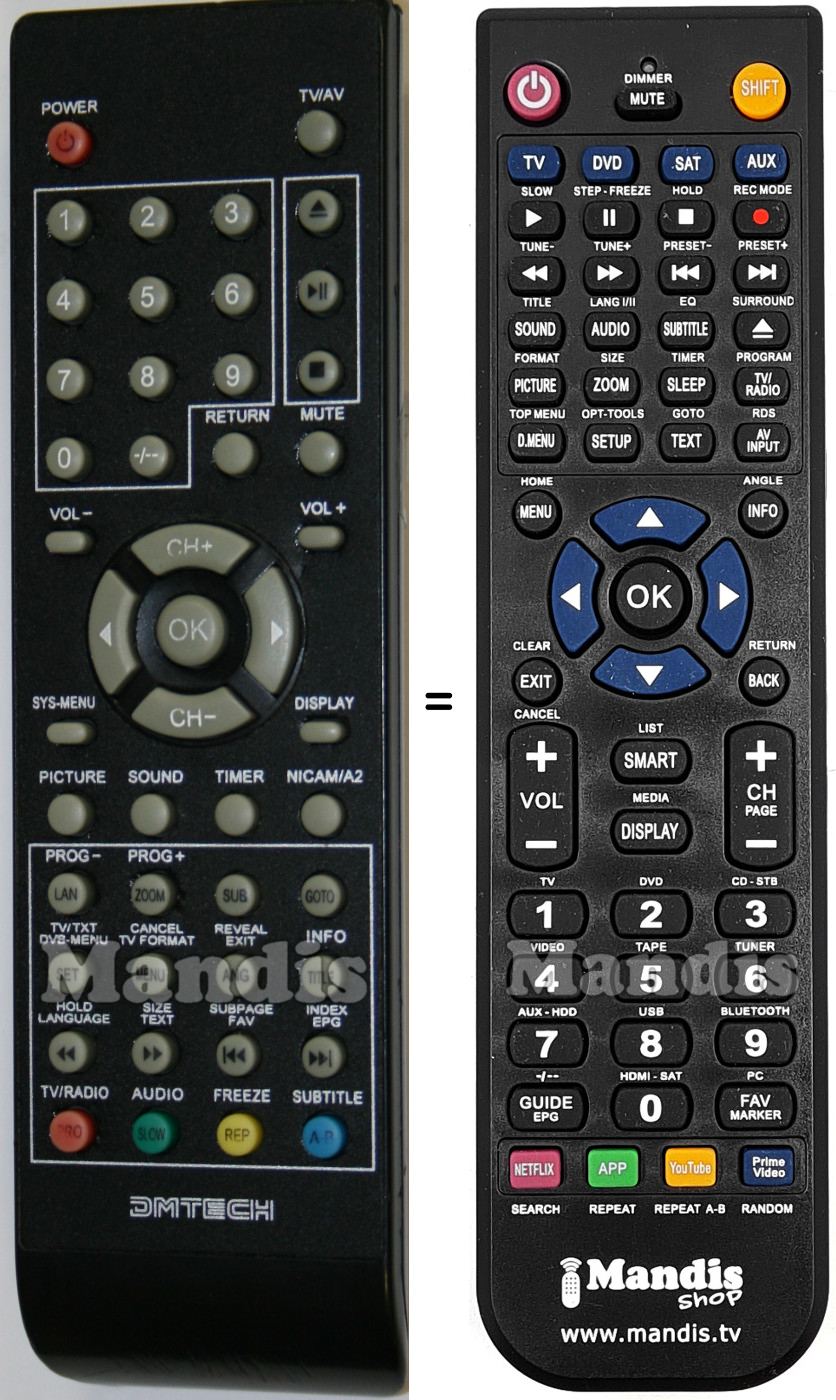 Aquest comandament a distància substitueix completament el teu TE15DVT en totes les seves funcions. No és un comandament universal, sinó una còpia exacta del teu original.