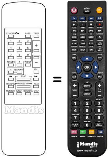 Comandament a distància que substitueix a l'original en totes les seves funcions. No es tracta d'un comandament universal sinó d'una còpia que substitueix l'original. Rebrà el comandament completament preparat per fer-lo funcionar només necessita posar-li les piles. No cal programar-lo. Té total garantia de que el comandament cumplirà amb les mateixes funcions de l'original.