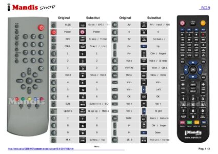 A continuació, us mostrarem la correspondència entre cada un dels botons del comandament original i el botó que realitza la mateixa funció en el comandament de substitució. En alguns casos, és possible que necessiti prémer la tecla SHIFT abans de prémer un altre botó per realitzar certes accions. Aquestes funcions addicionals sovint no s'utilitzen gaire i s'inclouen per facilitar la comprensió del comandament de substitució, o perquè el comandament original té més botons que el seu equivalent.