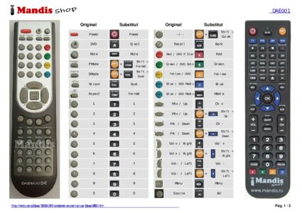 A continuació, us mostrarem la correspondència entre cada un dels botons del comandament original i el botó que realitza la mateixa funció en el comandament de substitució. En alguns casos, és possible que necessiti prémer la tecla SHIFT abans de prémer un altre botó per realitzar certes accions. Aquestes funcions addicionals sovint no s'utilitzen gaire i s'inclouen per facilitar la comprensió del comandament de substitució, o perquè el comandament original té més botons que el seu equivalent.