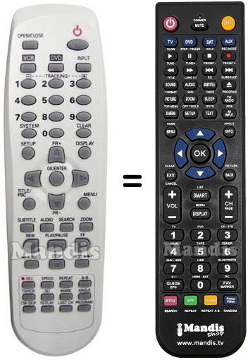 Sí, el comandament equivalent realitza totes les funcions, fins i tot quan el comandament original controla diversos aparells. Al comandament equivalent es poden programar els camps de diferents aparells (TV, DVD, SAT i AUX) d'aquesta manera es pot incloure totes les funcions del comandament original. Si si visualitza el manual de les tecles (instruccions del comandament a distància) podrà comprovar que hi ha totes les funcions.