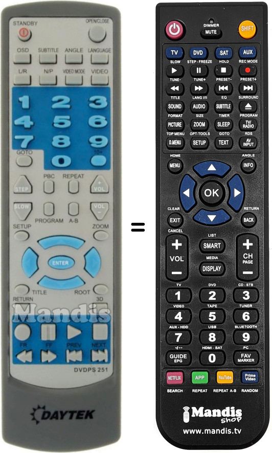 Comandament a distància que substitueix a l'original en totes les seves funcions.