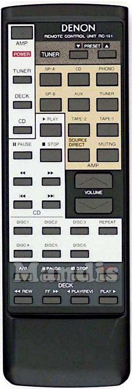 Comandaments equivalents que substitueixen en totes les seves funcions al comandament DENON RC-151 (4990232007):