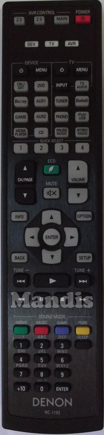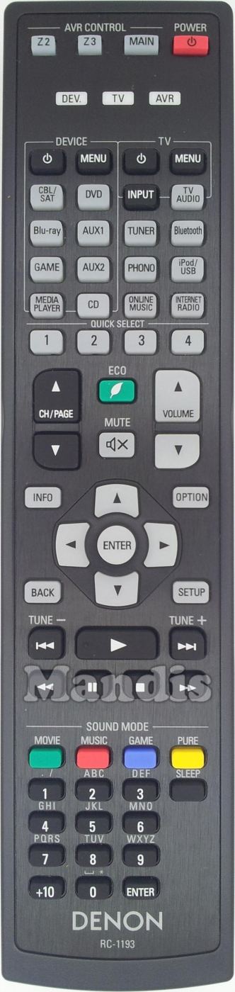 Comandament a distància original RC-1193 (30701016200AD) de la marca Denon. Es tracta d'un model original de comandament a distància.