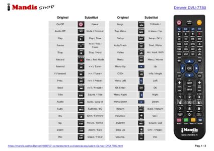 Inici > Marques > Comandaments a distància Denver > Comandament per Denver DVU - 7780 > Distribució interactiva de tecles Denver DVU - 7780