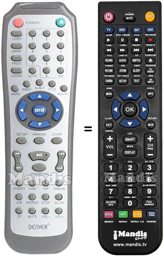 Aquest comandament a distància substitueix completament el teu DVD706K en totes les seves funcions. No és un comandament universal, sinó una còpia exacta del teu original.