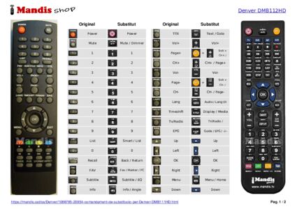 Inici > Marques > Comandaments a distància Denver > Comandament per Denver DMB112HD > Distribució interactiva de tecles Denver DMB112HD