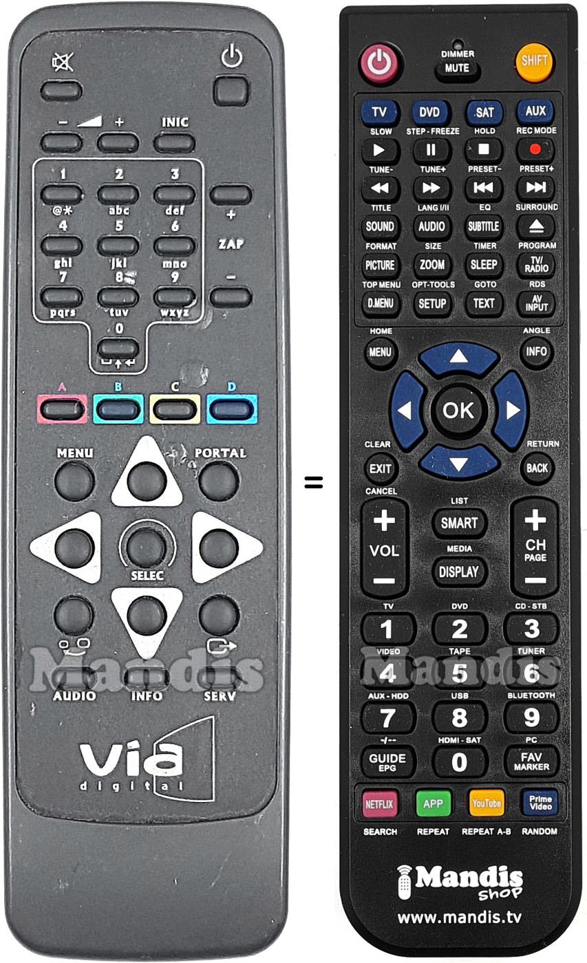 Aquest comandament a distància substitueix completament el teu VIA DIGITAL001 en totes les seves funcions. No és un comandament universal, sinó una còpia exacta del teu original.