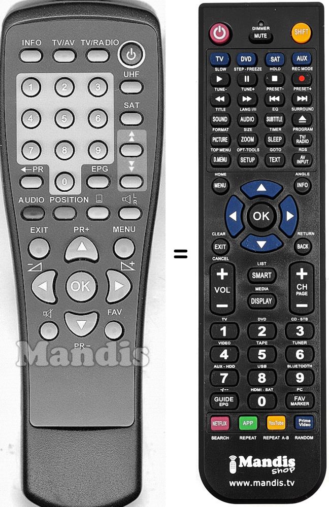 Comandament a distància que substitueix a l'original en totes les seves funcions. No es tracta d'un comandament universal sinó d'una còpia que substitueix l'original. Rebrà el comandament completament preparat per fer-lo funcionar només necessita posar-li les piles. No cal programar-lo. Té total garantia de que el comandament cumplirà amb les mateixes funcions de l'original.