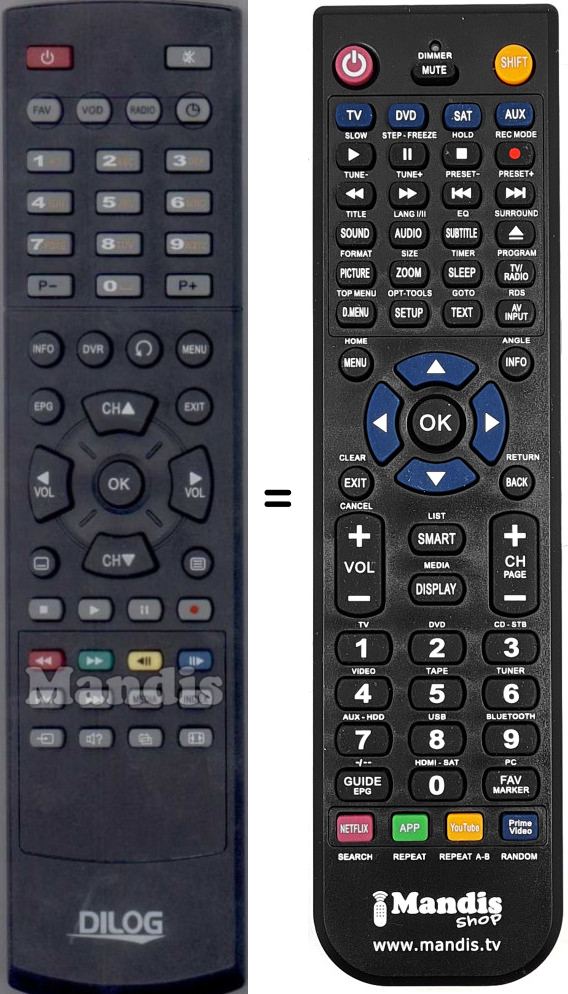 Comandament a distància que substitueix a l'original en totes les seves funcions.