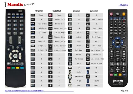 Aquest comandament a distància substitueix completament el teu RC1059 (30067042) en totes les seves funcions. No és un comandament universal, sinó una còpia exacta del teu original.