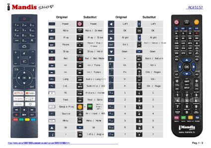 A continuació, us mostrarem la correspondència entre cada un dels botons del comandament original i el botó que realitza la mateixa funció en el comandament de substitució. En alguns casos, és possible que necessiti prémer la tecla SHIFT abans de prémer un altre botó per realitzar certes accions. Aquestes funcions addicionals sovint no s'utilitzen gaire i s'inclouen per facilitar la comprensió del comandament de substitució, o perquè el comandament original té més botons que el seu equivalent.