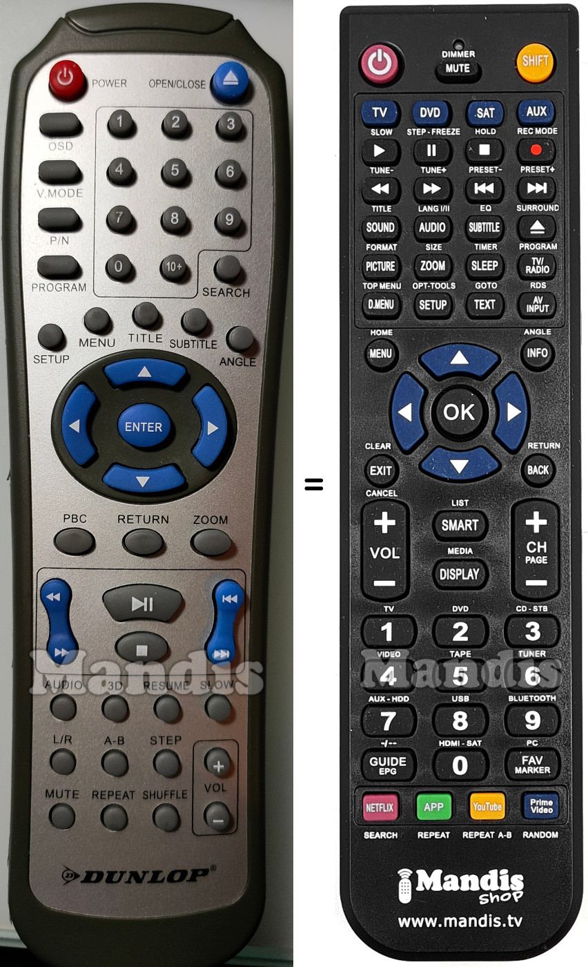 Aquest comandament a distància substitueix completament el teu D1055 en totes les seves funcions. No és un comandament universal, sinó una còpia exacta del teu original.