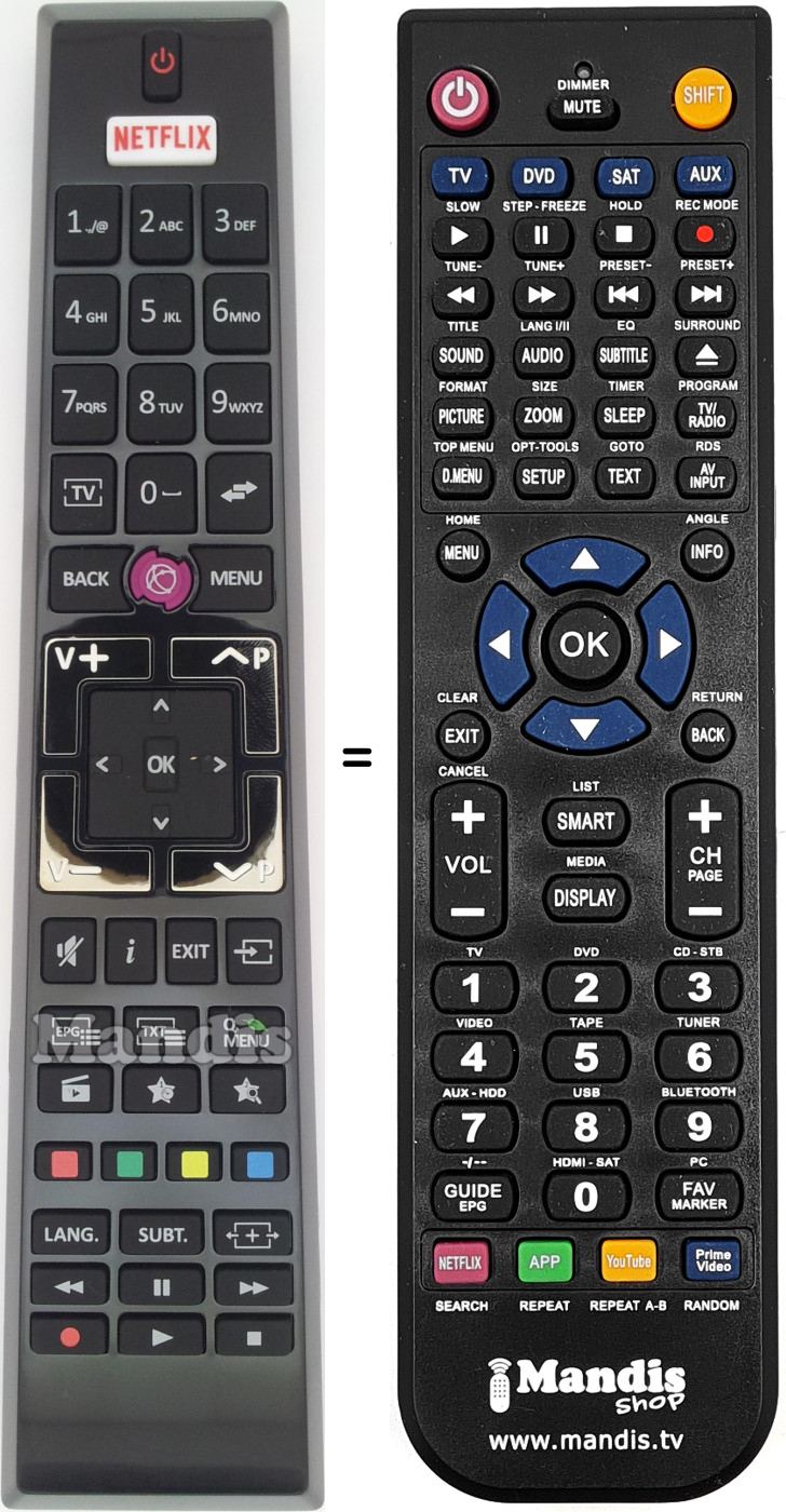 Comandament a distància que substitueix a l'original en totes les seves funcions.