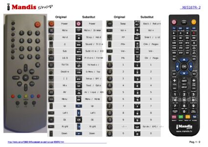 Aquest comandament a distància substitueix completament el teu X65187R-2 en totes les seves funcions. No és un comandament universal, sinó una còpia exacta del teu original.