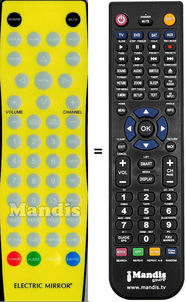 Comandament a distància que substitueix a l'original en totes les seves funcions.