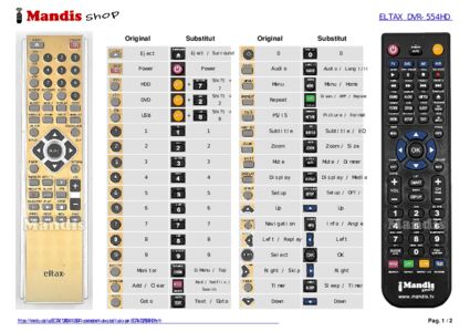 Aquest comandament a distància substitueix completament el teu DVR554HD en totes les seves funcions. No és un comandament universal, sinó una còpia exacta del teu original.