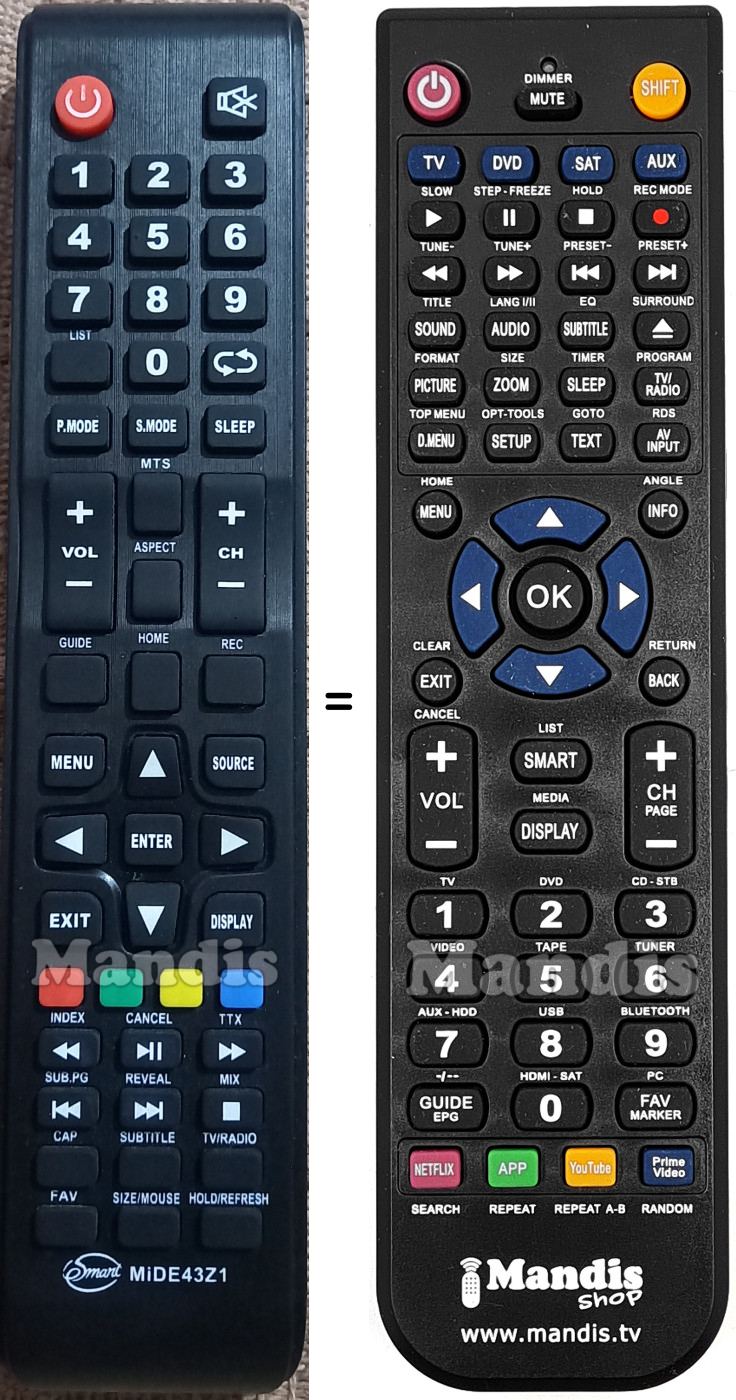 Aquest comandament a distància substitueix completament el teu MiDE43Z1 en totes les seves funcions. No és un comandament universal, sinó una còpia exacta del teu original.