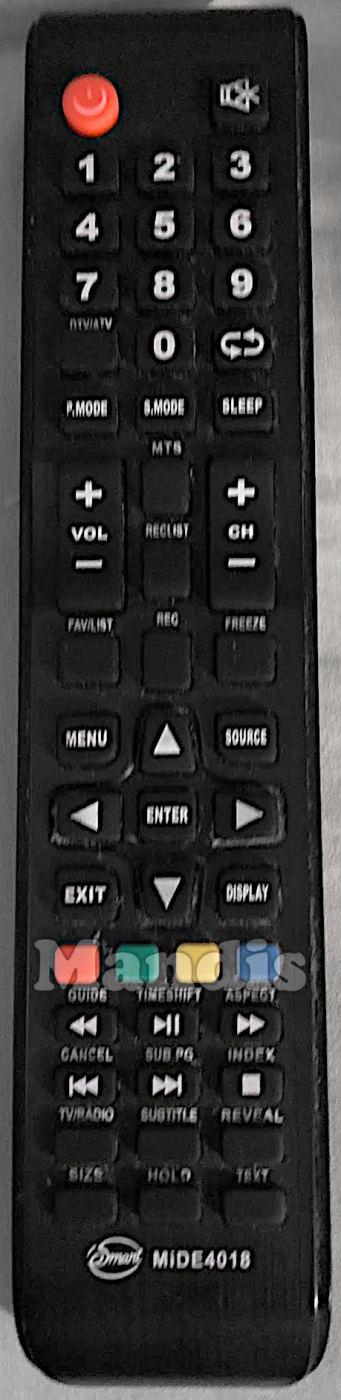 Comandament a distància original MiDE4018 que serveix per televisors de la marca ESmart. Es tracta d'un model original de comandament a distància.