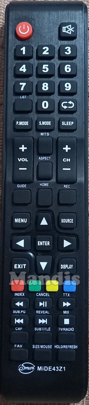 Comandament a distància original MiDE43Z1 que serveix per televisors de la marca ESmart. Es tracta d'un model original de comandament a distància.