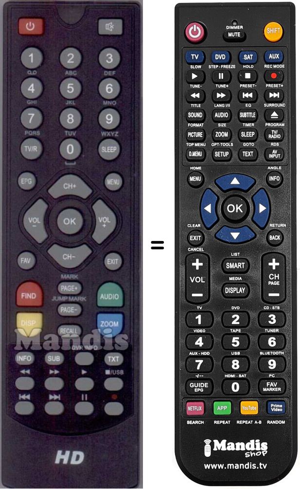 Comandament a distància que substitueix a l'original en totes les seves funcions. No es tracta d'un comandament universal sinó d'una còpia que substitueix l'original. Rebrà el comandament completament preparat per fer-lo funcionar només necessita posar-li les piles. No cal programar-lo. Té total garantia de que el comandament cumplirà amb les mateixes funcions de l'original.