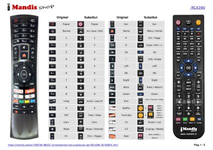 Aquest comandament a distància substitueix completament el teu RC4390 (30100824) en totes les seves funcions. No és un comandament universal, sinó una còpia exacta del teu original.