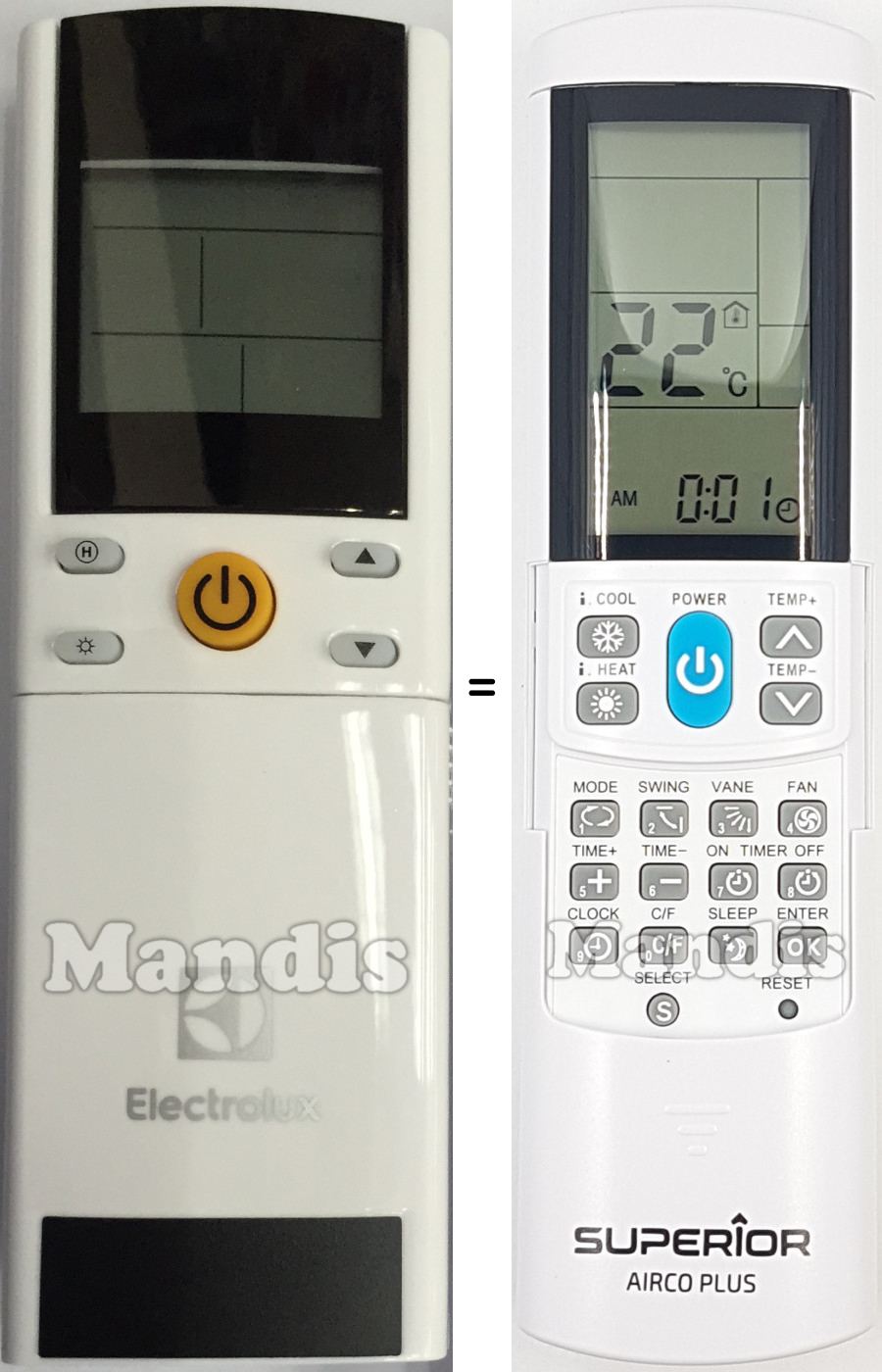 Inici > Marques aire condicionat > Llistat de comandaments per aire condicionat Electrolux > Comandament universal ELECTROLUX Aircoplus (42530)