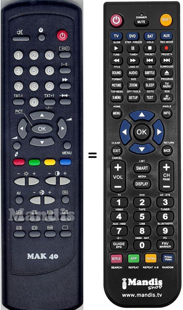Comandament a distància que substitueix a l'original en totes les seves funcions. No es tracta d'un comandament universal sinó d'una còpia que substitueix l'original. Rebrà el comandament completament preparat per fer-lo funcionar només necessita posar-li les piles. No cal programar-lo. Té total garantia de que el comandament cumplirà amb les mateixes funcions de l'original.