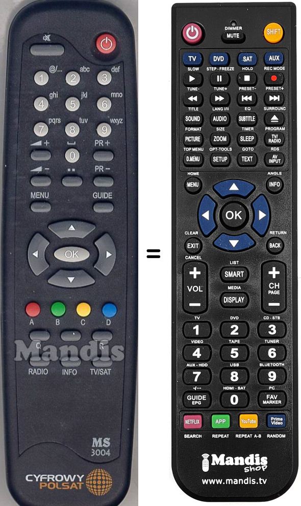 Comandament a distància que substitueix a l'original en totes les seves funcions.