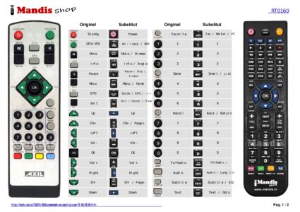 Aquest comandament a distància substitueix completament el teu RT 160 (RT0160) en totes les seves funcions. No és un comandament universal, sinó una còpia exacta del teu original.