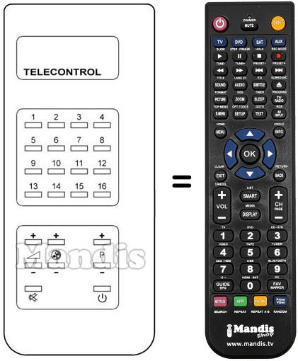 Comandament a distància que substitueix a l'original en totes les seves funcions. No es tracta d'un comandament universal sinó d'una còpia que substitueix l'original. Rebrà el comandament completament preparat per fer-lo funcionar només necessita posar-li les piles. No cal programar-lo. Té total garantia de que el comandament cumplirà amb les mateixes funcions de l'original.