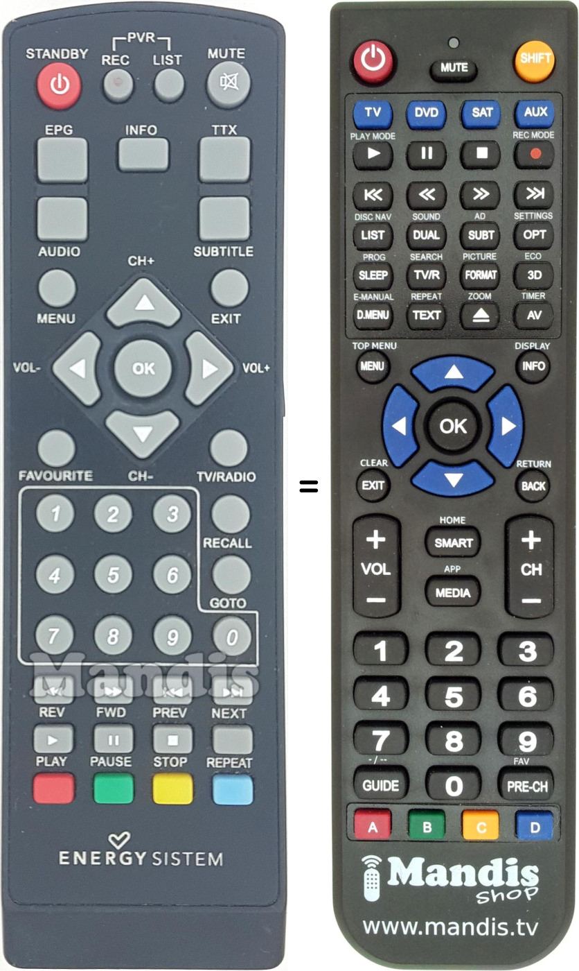 Aquest comandament a distància substitueix completament el teu REMCON1650 en totes les seves funcions. No és un comandament universal, sinó una còpia exacta del teu original.