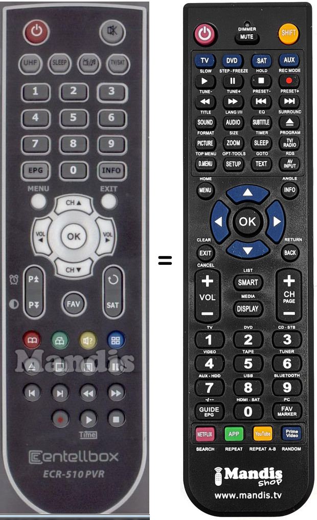 Comandament a distància que substitueix el comandament ECR-510-PVR en totes les seves funcions.