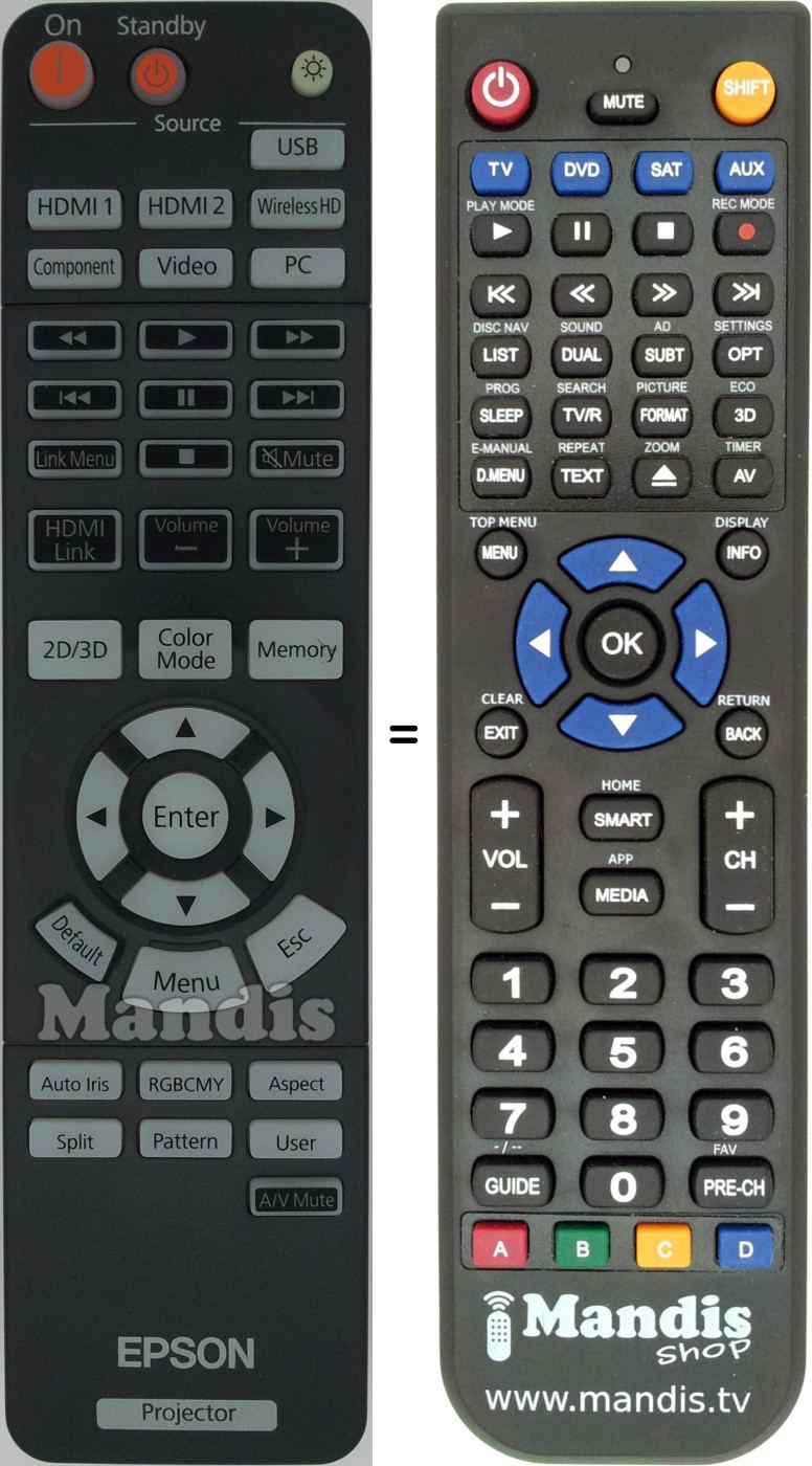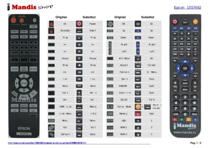 Aquest comandament a distància substitueix completament el teu EH-TW6000W (1557492) en totes les seves funcions. No és un comandament universal, sinó una còpia exacta del teu original.
