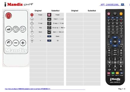 Aquest comandament a distància substitueix completament el teu KPT-2000B 5208L en totes les seves funcions. No és un comandament universal, sinó una còpia exacta del teu original.